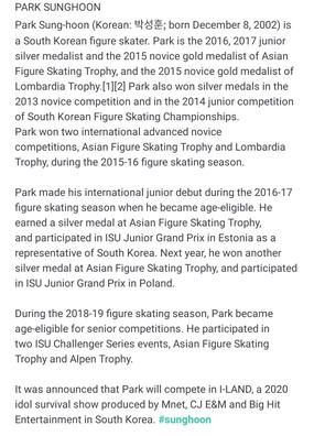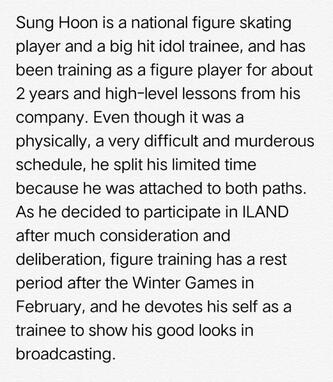 — Sunghoon skated for 10 years, became a backup to the national team and made it to 7th place out of all male figure skaters in South Korea